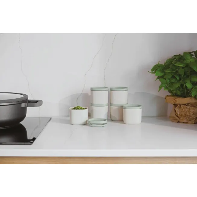 Especiarias, doces, biscoitos, farinha… mantenha tudo fresco e saboroso com a ajuda destes recipientes empilháveis para alimentos. O conjunto grande de 2 recipientes pode ser ampliado com o nosso conjunto pequeno de 6 recipientes para alimentos e especiarias. A grande abertura garante fácil acesso ao conteúdo do recipiente. Além disso, os recipientes são empilháveis e têm um formato quadrado para otimizar a economia de espaço. Os recipientes são antiderrapantes e podem ser lavados na máquina de lavar louça, tornando-os fáceis de limpar! Graças à janela transparente na parte superior, pode verificar o conteúdo em qualquer momento. Pensando no nosso futuro, os nossos recipientes são feitos com plásticos reciclados para uma experiência culinária mais ecológica e sustentável. Divirta-se a cozinhar e apimente as suas refeições com o nosso prático conjunto de recipientes para alimentos!